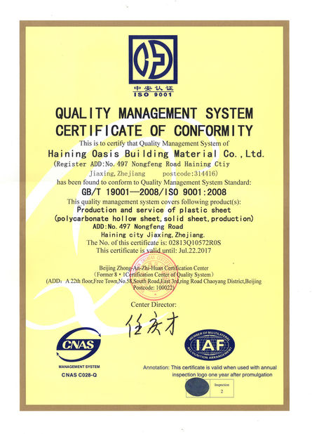 Chiny Haining Oasis Building Material CO.,LTD Certyfikaty